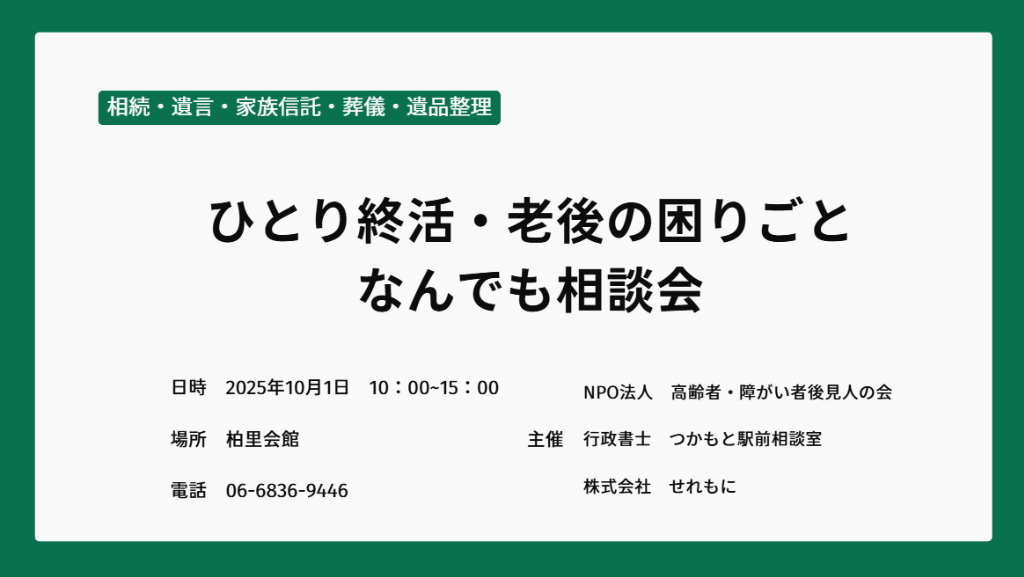 電話:06-6836-9446(行政書士 つかもと駅前相談室)